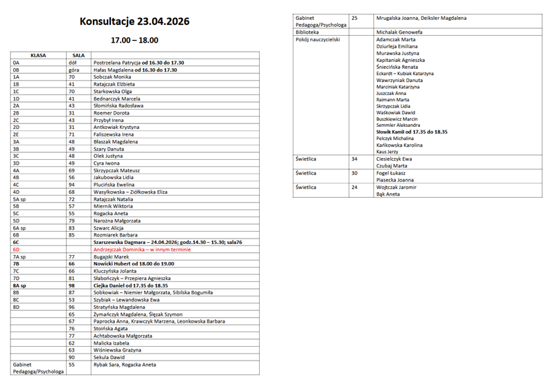 Informacje dotyczące szkoły