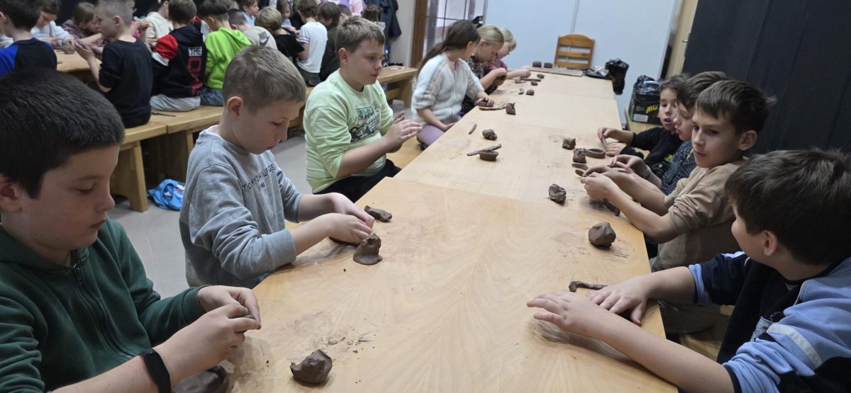 W Biskupinie przenieśliśmy się do epoki żelaza. Zwiedzanie zrekonstruowanej Osady pozwoliło nam poznać codzienne życie jej dawnych mieszkańców. Największą atrakcją okazały się warsztaty z gliny, podczas których każdy uczeń mógł spróbować swoich sił w garncarstwie.