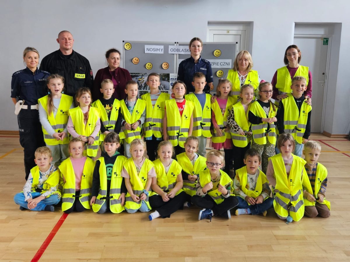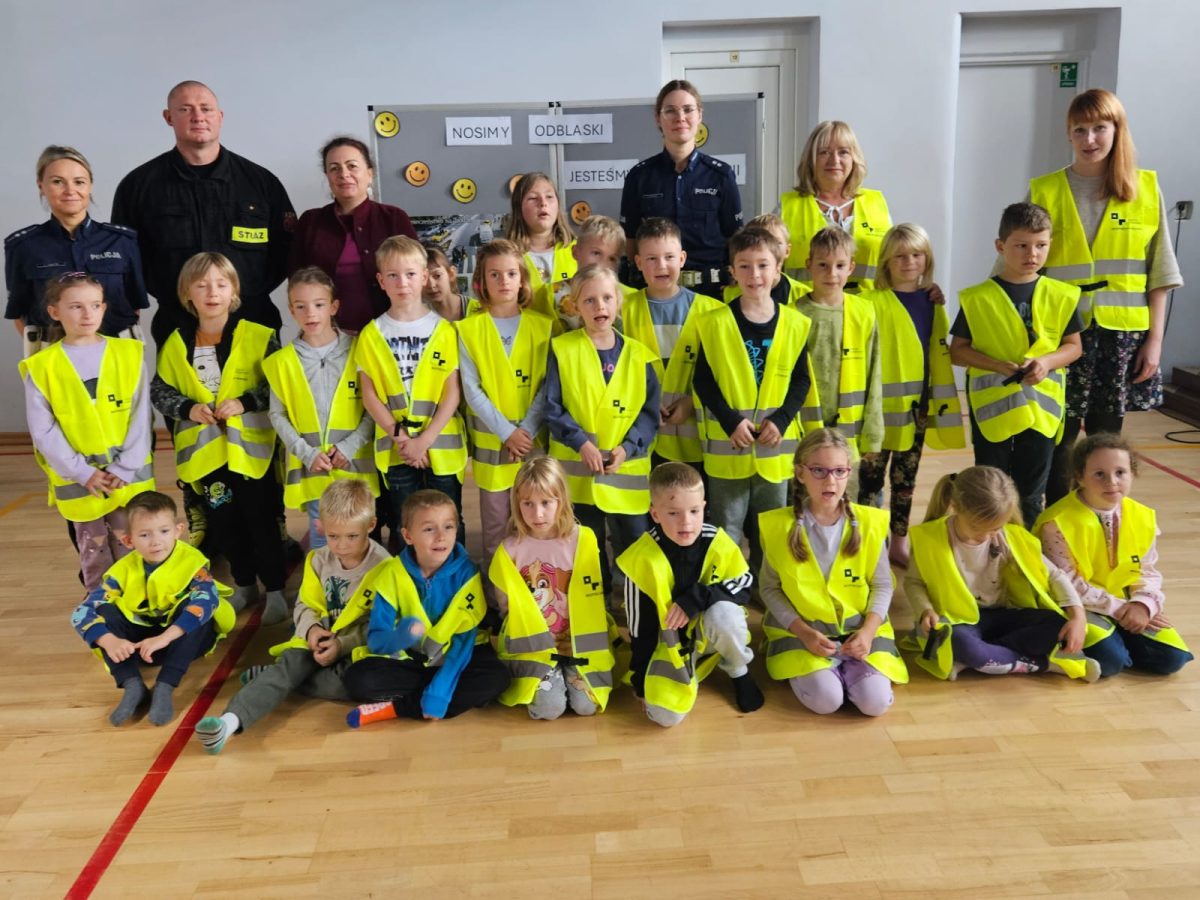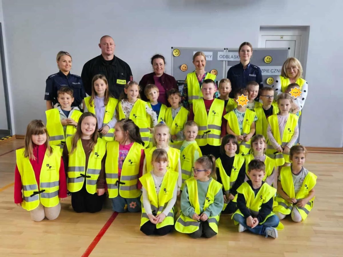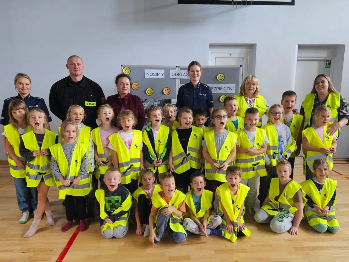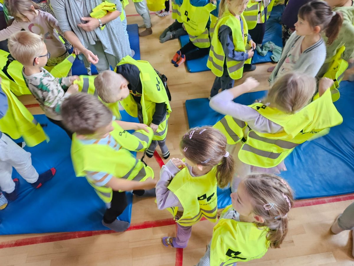 Nasi uczniowie wykazali się dużą wiedzą na temat zasad na drodze i działania w sytuacjach kryzysowych. Każdy z nich dostał również własną kamizelkę odblaskową.