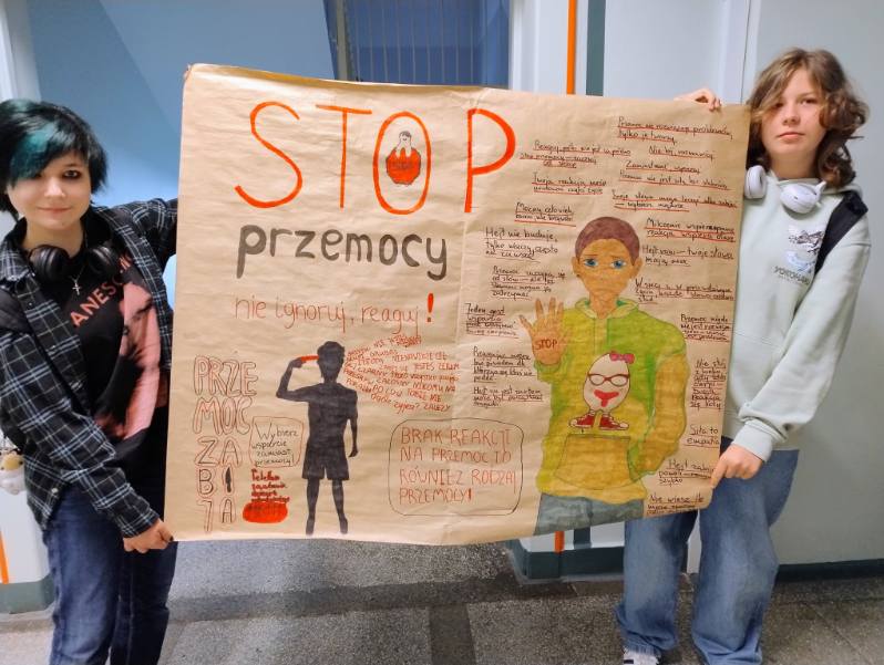 W ramach ogólnopolskiej inicjatywy Ministerstwa Edukacji Narodowej w ubiegłym tygodniu na lekcjach wychowawczych uczniowie wraz z wychowawcami stworzyli plakaty pod hasłem „Stop Przemocy”.